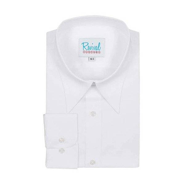 Classic 1940s/50s Spearpoint collar shirt in quality white 100% cotton, Ideal for wearing vintage/Rockabilly box suits and fish ties.