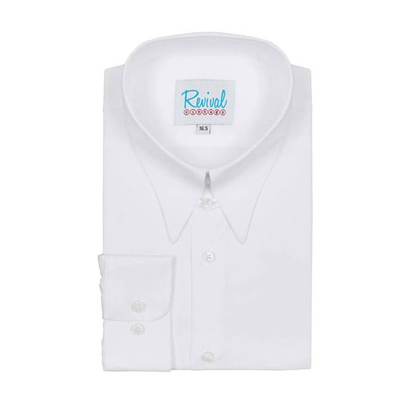 Classic 1940s/50s Spearpoint tab collar shirt in quality white 100% cotton, Ideal for wearing vintage/Rockabilly box suits and fish ties.