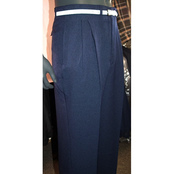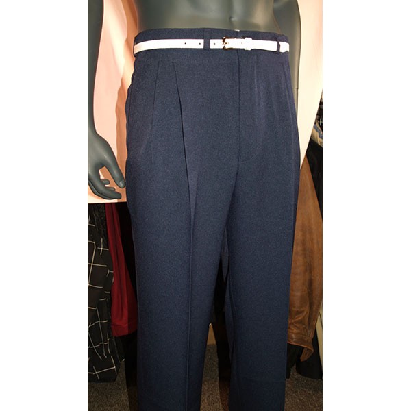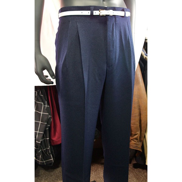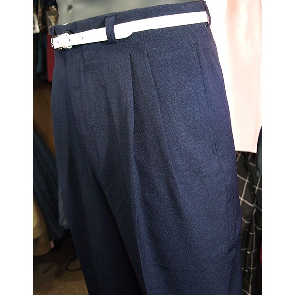 Classic high waisted 1950s style pegs in dark blue with a black slub fabric, vintage reproduction design by Ozone Clothing , made in the UK
