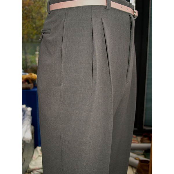 Quality tailored 1950s vintage reproduction high waisted pegs in dove grey, pattern made from an original American pair, manufactured in the UK for Ozone Clothing.