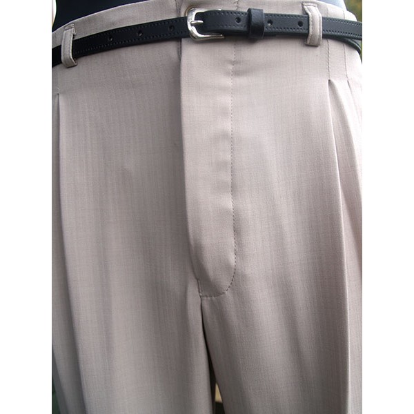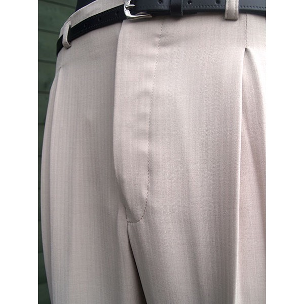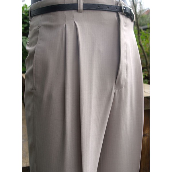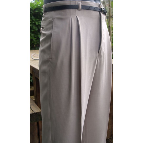 High quality tailor made 1950s Rockabilly style high waisted pegs in an stylish light stone cloth, a exact reproduction of a an American vintage pair, manufactured in the UK for ozone clothing.