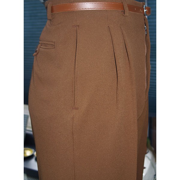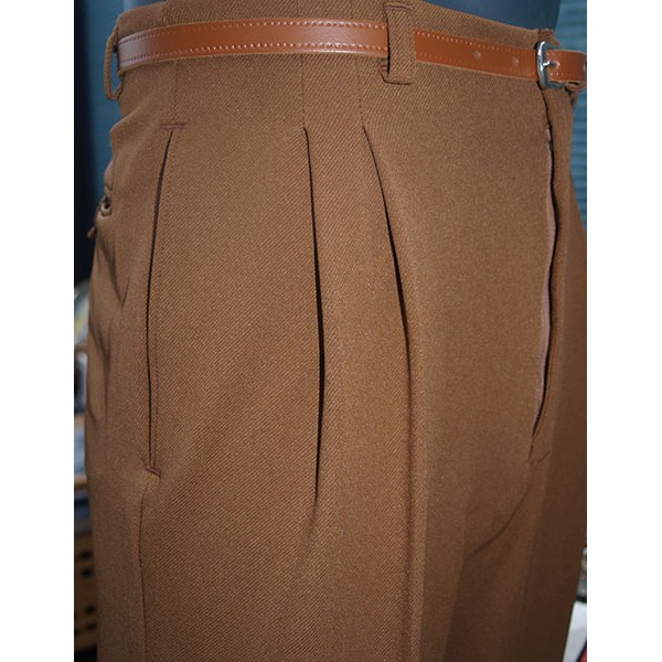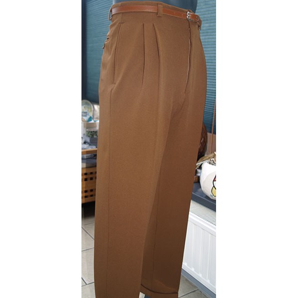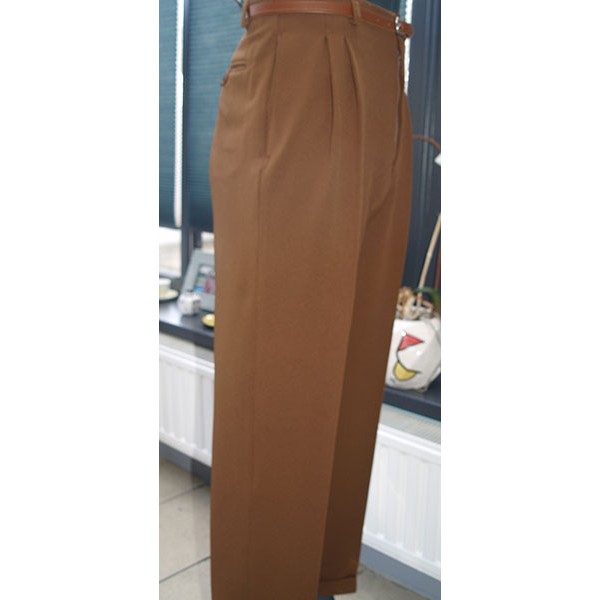 Classic vintage 1950s Rockabilly style high waisted pegs, in brown twill, quality British tailoring made in the UK by Ozone Clothing.