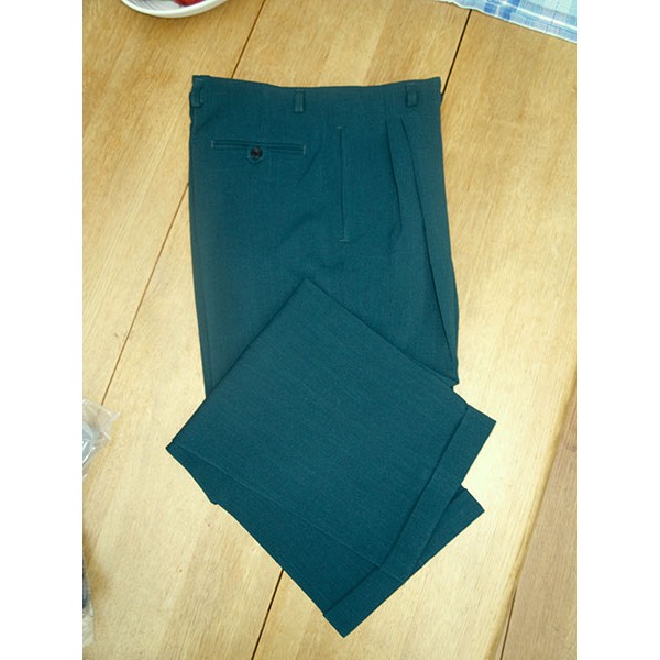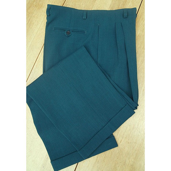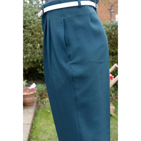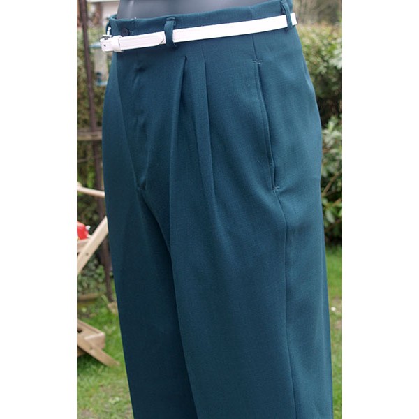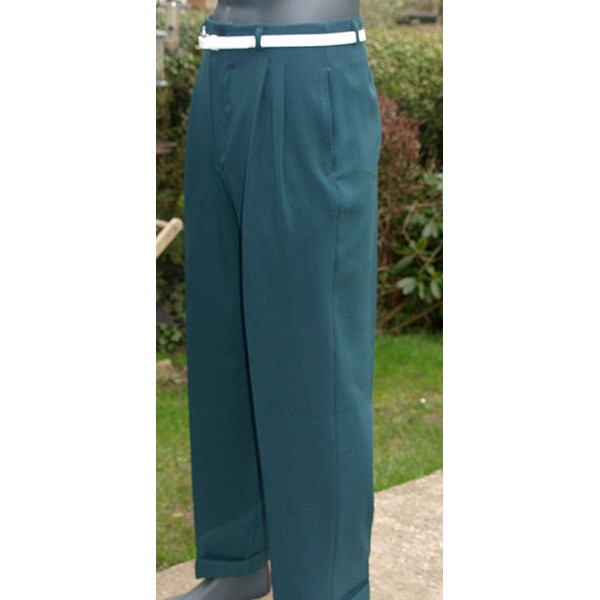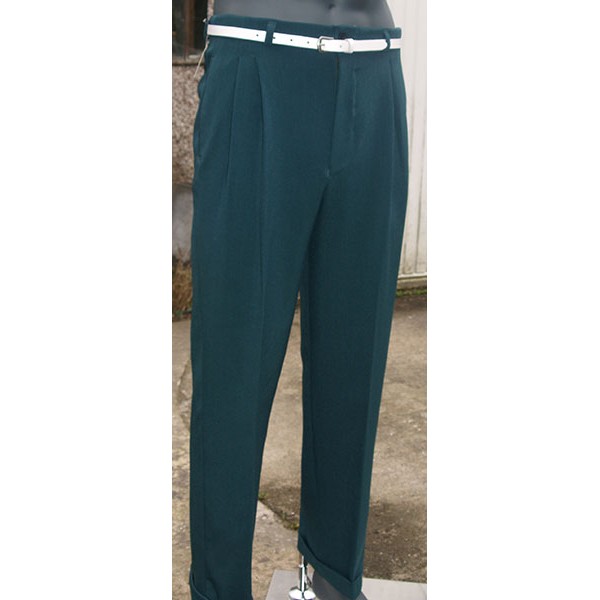 Classic vintage 1950s Rockabilly style high waisted pegs, in bottle green, quality British tailoring made in the UK by Ozone Clothing. .